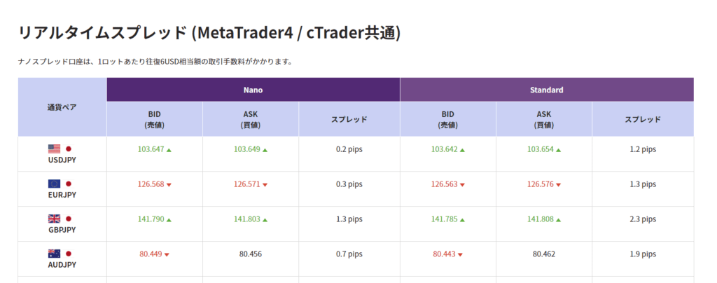 特にナノスプレッド口座はECN方式でスプレッドが限りなく0に近く、手数料も1Lot(10万通貨)で往復6ドルとECN方式の手数料としては業界最安値です。