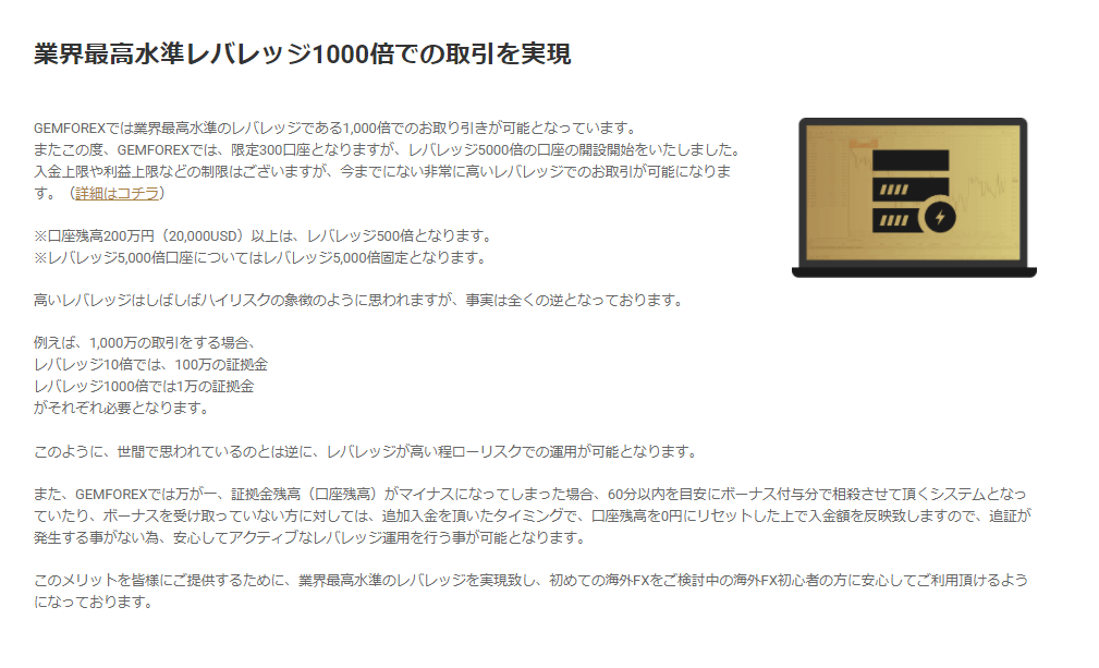 なので、Gemforexは不安なく超ハイレバレッジに挑戦できる環境です。